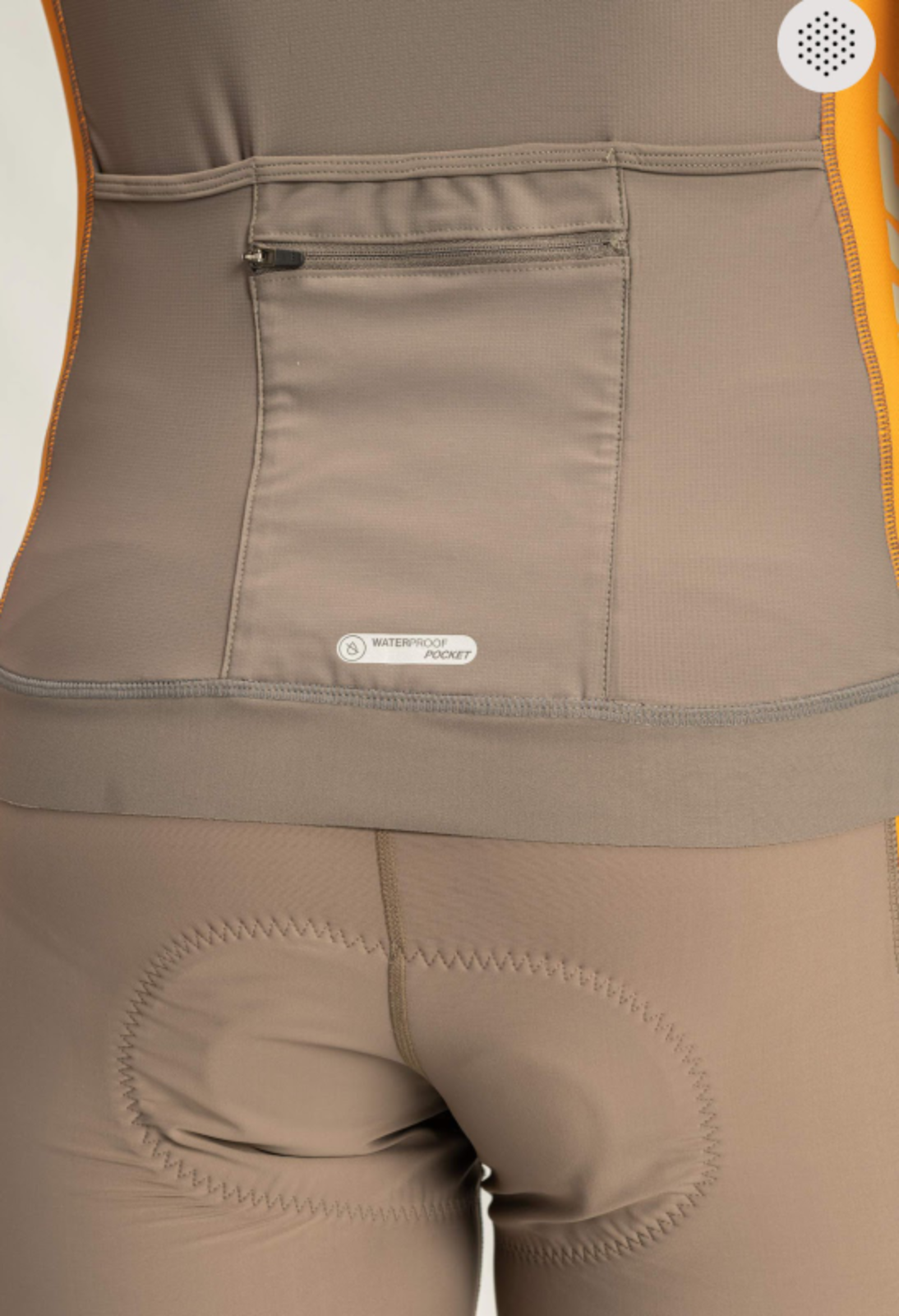 Tecido Harmony: em fibra mista de Poliamida e Elastano com toque leve e alta respirablidade.
