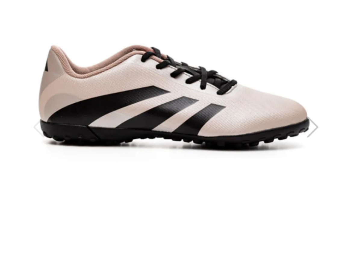 A Chuteira Society Adidas Predator Artilheira 24 possui um cabedal sintético com texturização Strikeprint, oferecendo maior controle de bola e toque preciso durante o jogo. Seu material é robusto, garantindo resistência e performance em gramados artificiais. O solado de borracha é ideal para campos de grama sintética, com travas dispostas de maneira estratégica para otimizar tração e estabilidade. O modelo conta com um fecho de cadarço tradicional, proporcionando ajuste seguro e confortável. A entressola oferece amortecimento leve, enquanto a palmilha anatômica favorece o conforto, moldando-se ao formato dos pés. O reforço na biqueira assegura maior durabilidade e proteção.”